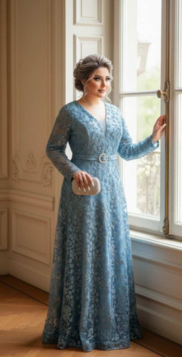 ماکسی مجلسی زنانه سایز بزرگ دانتل حریر مدل غزل