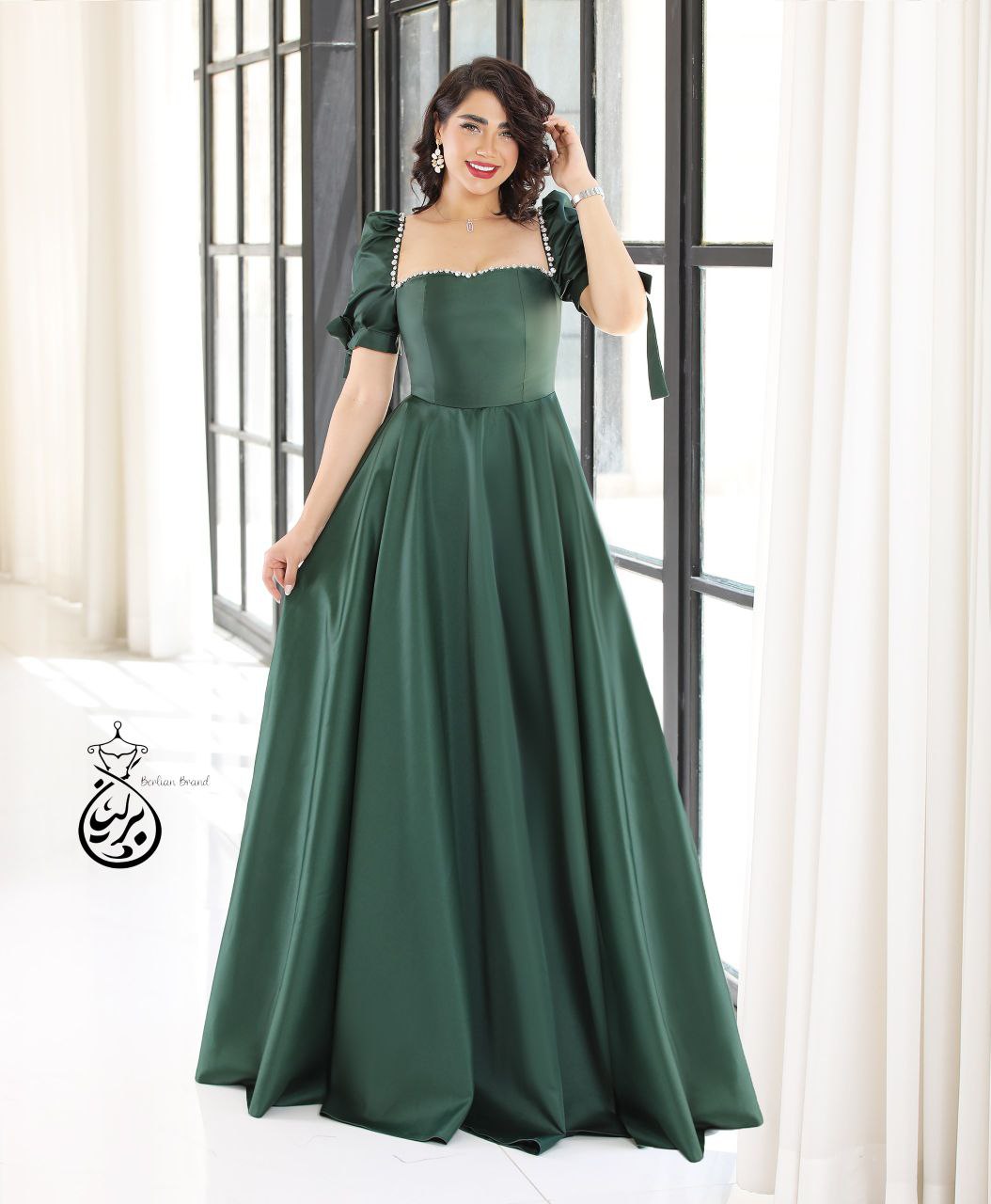 پیراهن مجلسی زنانه ساتن آمریکایی نگین دوزی شده مدل (نهال)