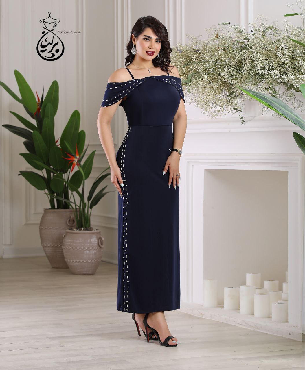 پیراهن مجلسی زنانه مدل ماهی شیک با نگین و چاک ( سلین )