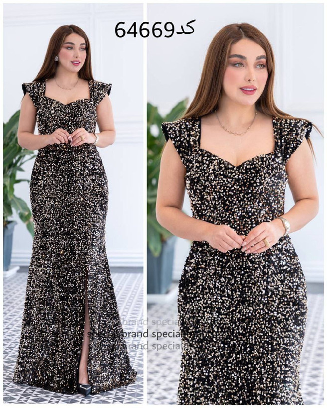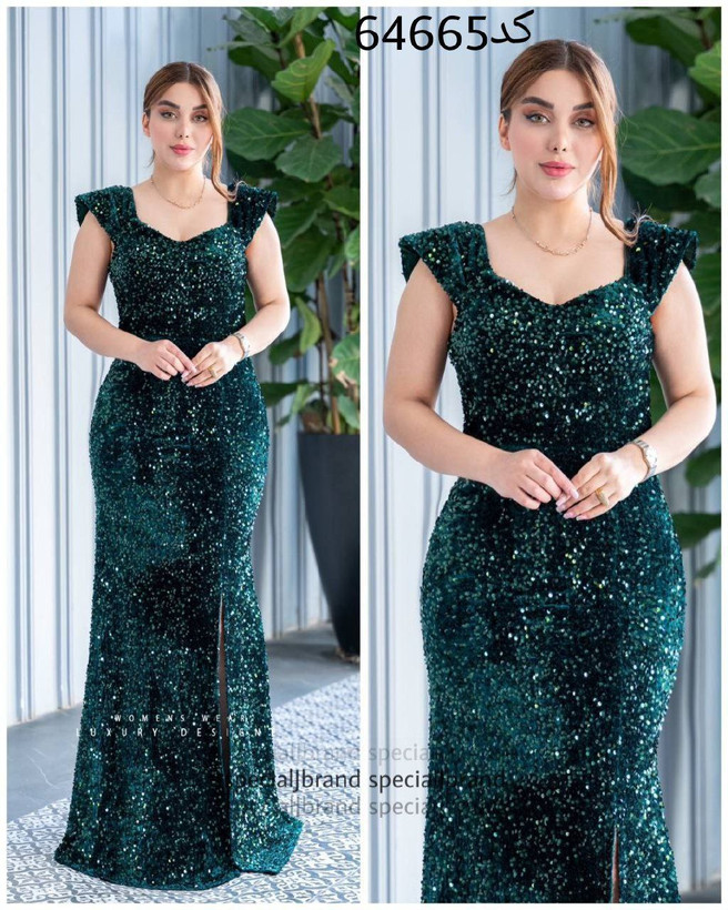 جنس : پولک مخملی(قد۱۵۵)(پشت زیپ داره)(بند دکلته داره)