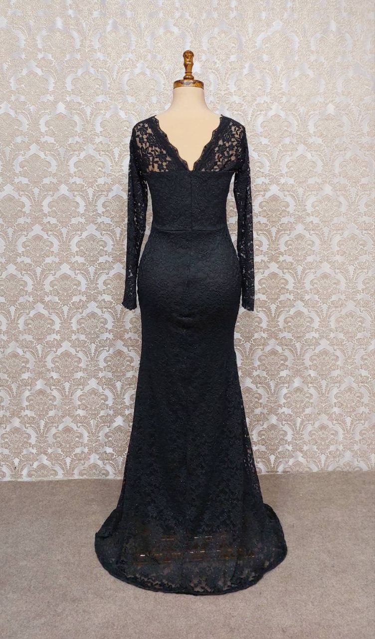 ماکسی مجلسی زنانه گیپور برجسته یقه پشت هفتی مدل(ستین)