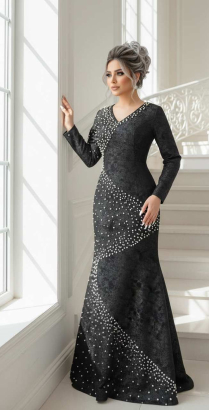 ماکسی مجلسی زنانه مدل ماهی ژاکارد ترک مروارید پانچ (ماهی)