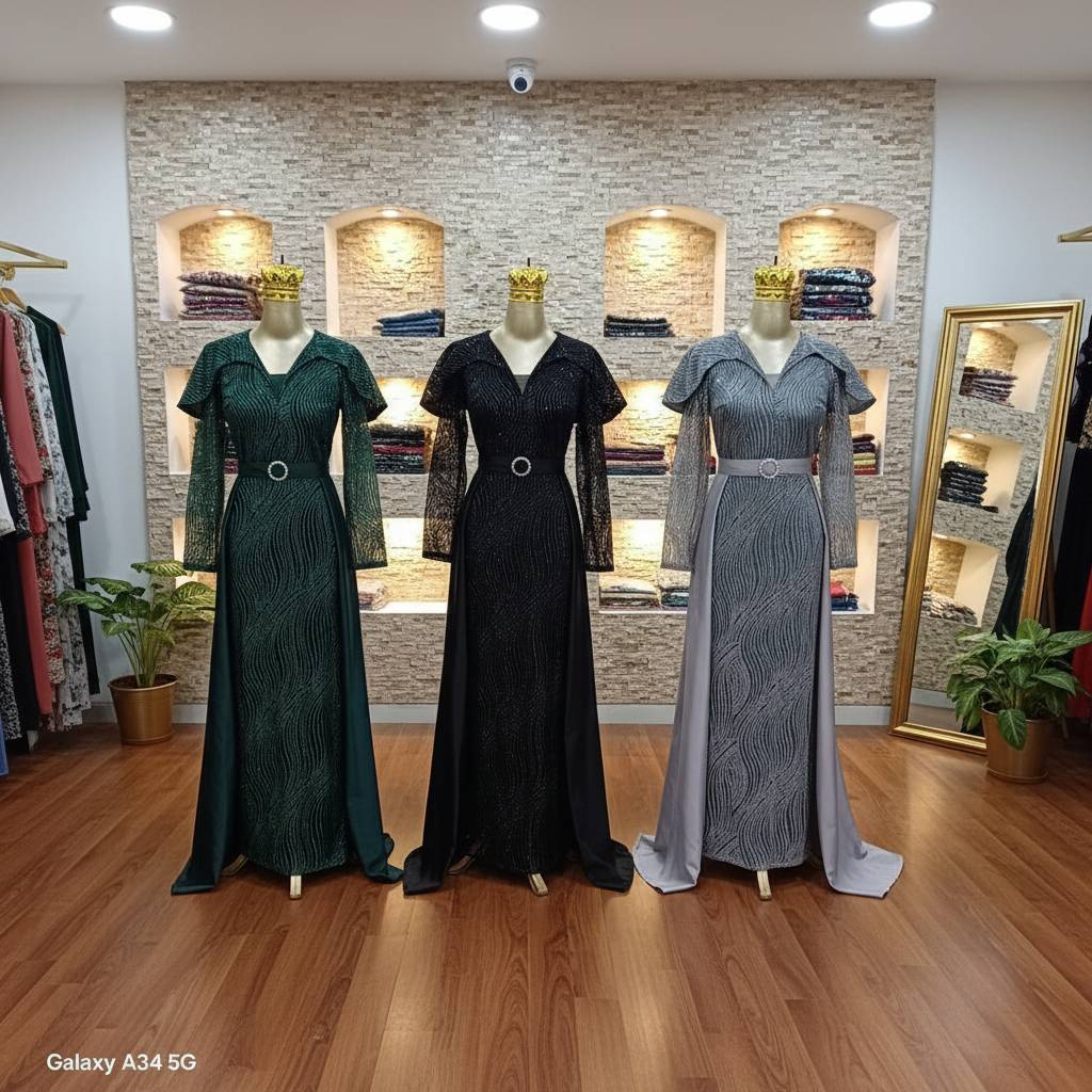 ماکسی دو دامنه مجلسی زنانه حریر شاین ساتن آمریکایی (دلبر)